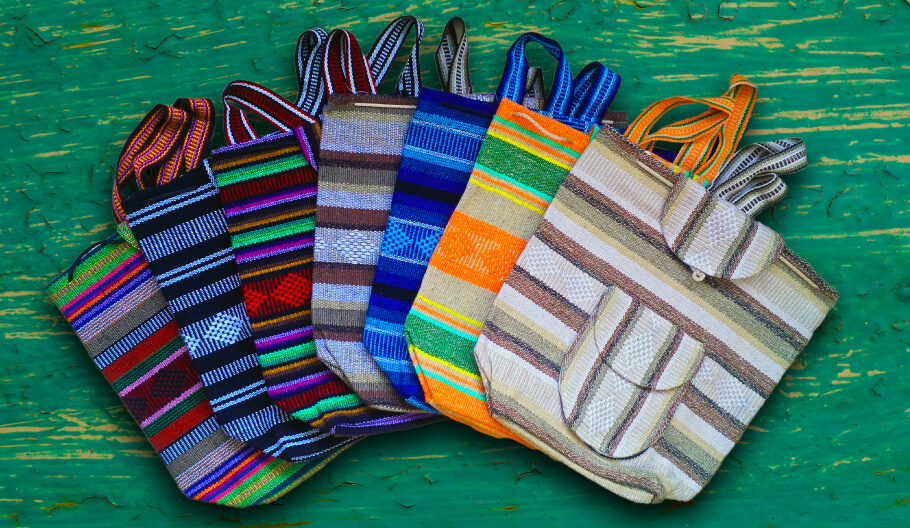 Los accesorios están elaborados principalmente con telas artesanales y son ideales para decorar el hogar o para llevar artículos escolares.