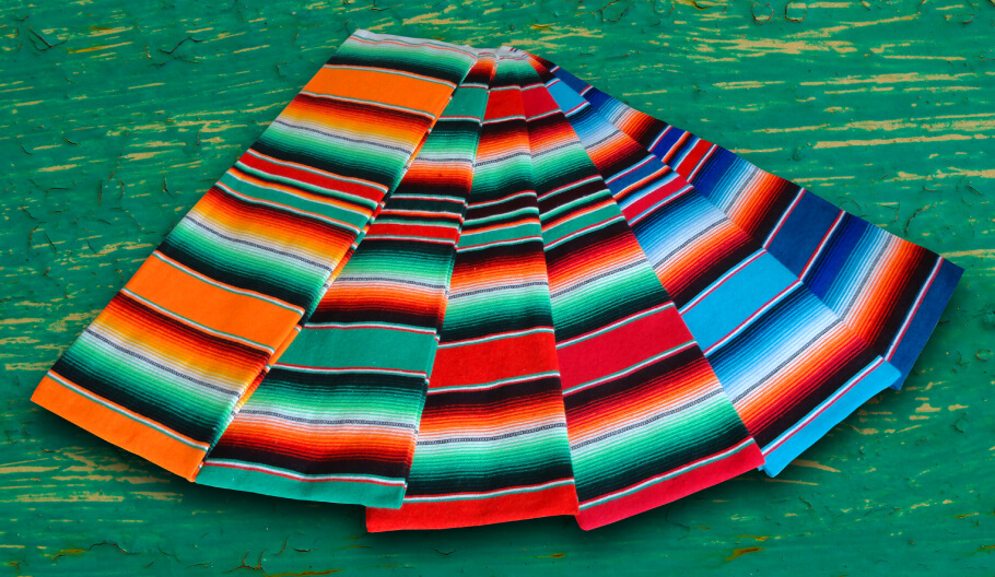 El sarape artesanal mexicano con sus franjas de múltiples colores es uno de los productos más representativos, símbolo de identidad y expresión de México.
